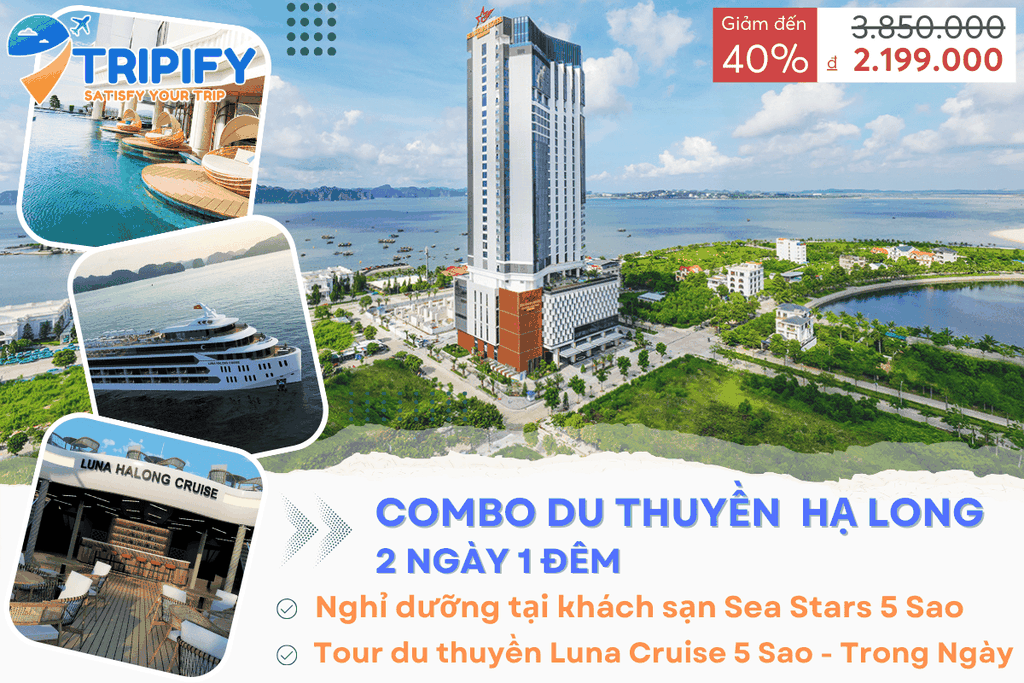 Combo Hạ Long 2N1Đ | Du Thuyền Luna Cruise 5* + Ks Sea Stars | Ưu Đãi 40% OFF