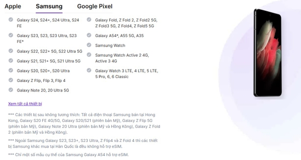 Hãy kiểm tra để chắc chắn rằng điện thoại, máy tính bảng bạn có thể sử dụng được eSIM khi mua.